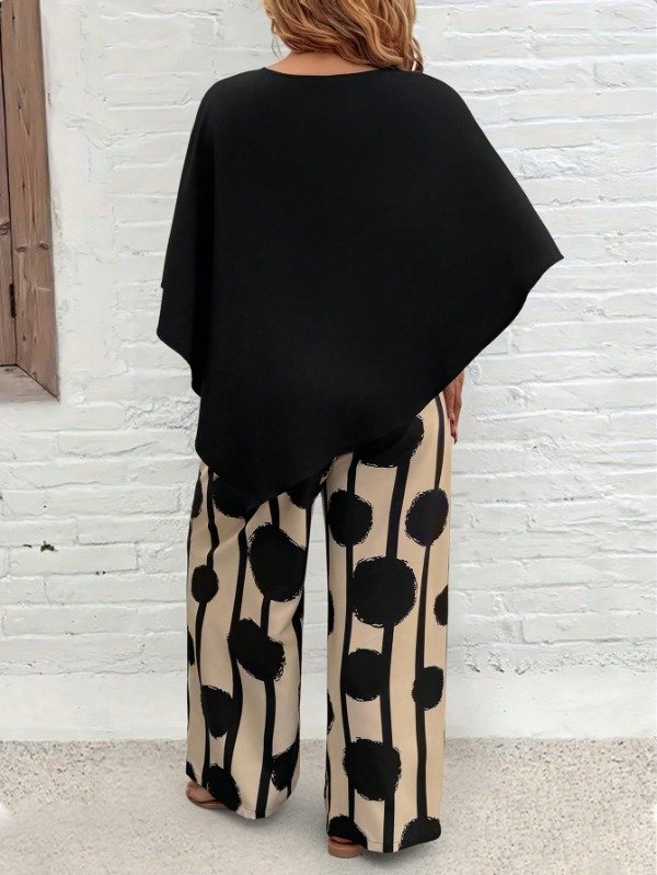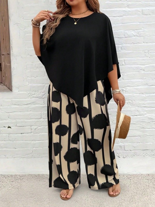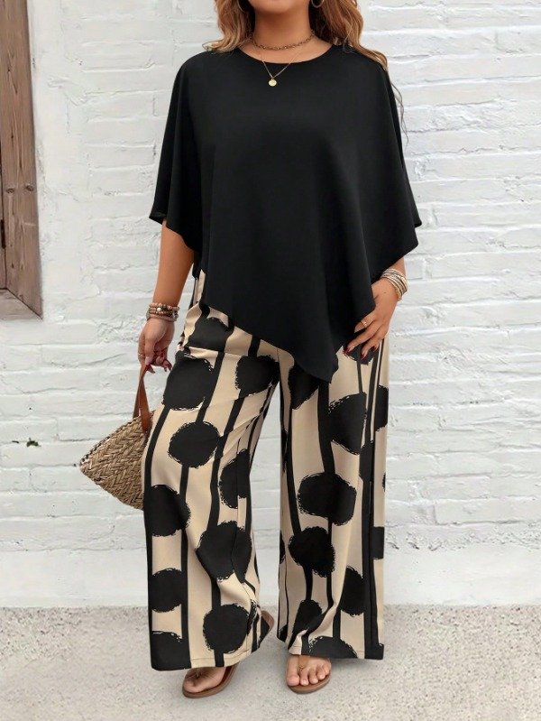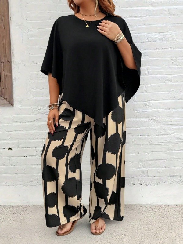 Conj. Pantalón Tipo Pijama con Tira Estampado y Remera Manga Murciélago.