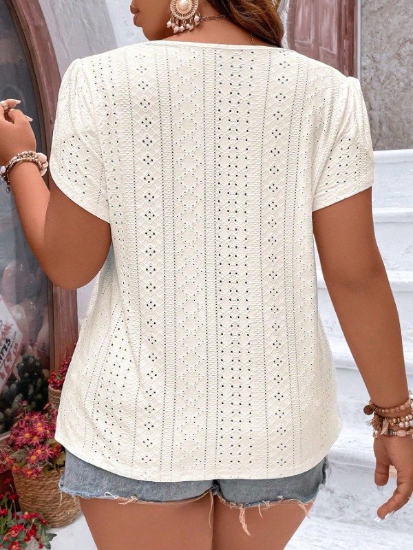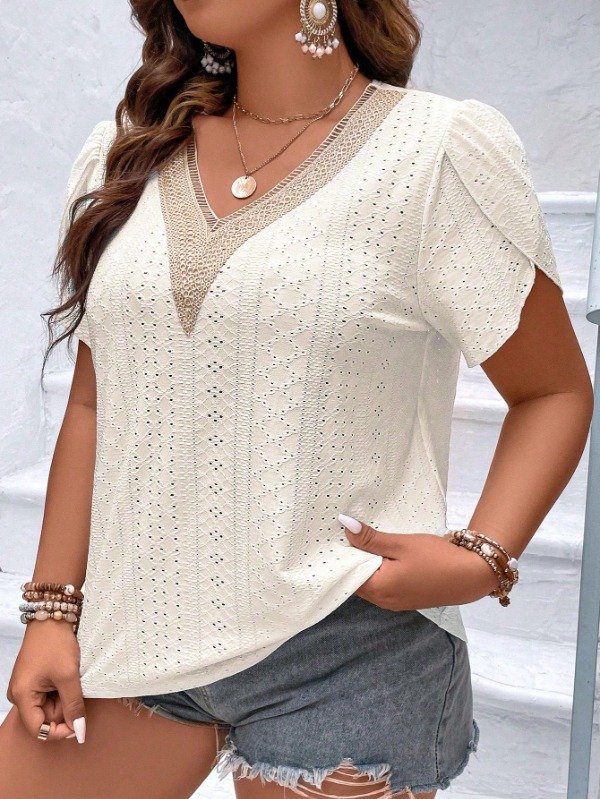 Remera Escote en V con Puntilla Dorada. Manga Tulipán.